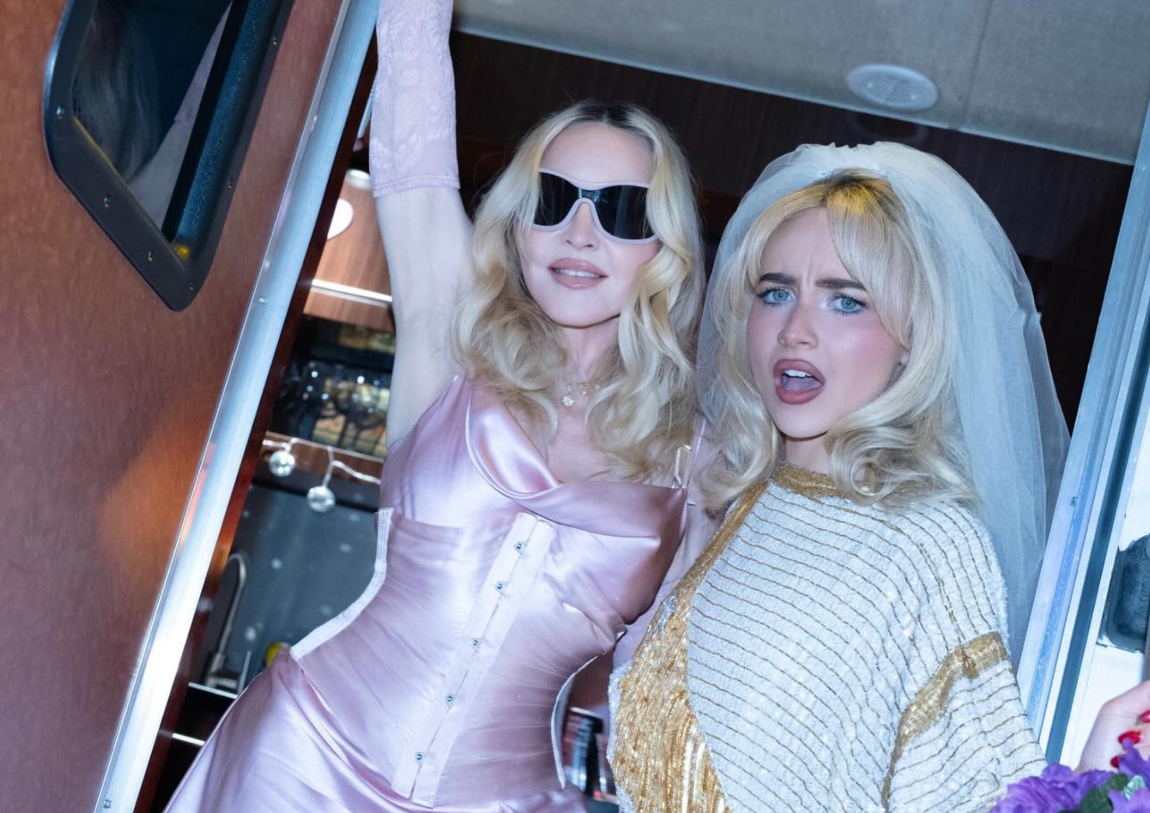 The nearly 15-minute, 3-song segment came towards the tail end of the one-hour-45-minute mini-concert. It opened with the blond duo performing a portion of Madonna’s iconic 1990 classic “Vogue,” which segued seamlessly from the Old Hollywood Glam suite where Carpenter sang her song “Juno,” — the one where she would traditionally “arrest” a different celebrity on her Short ’n Sweet tour.