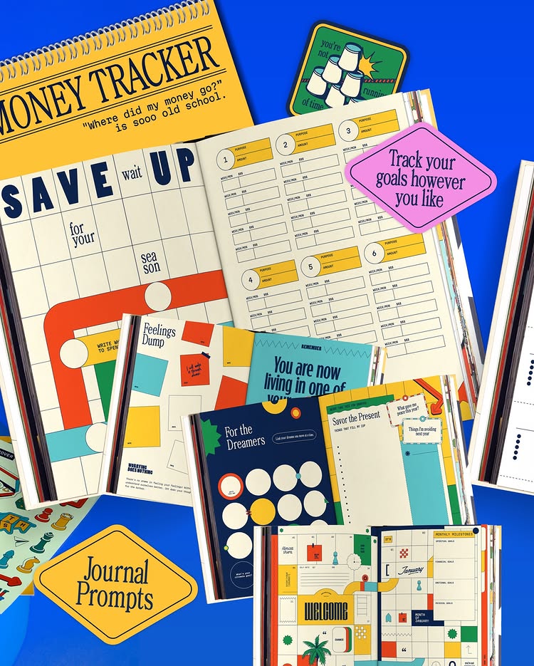 Simmer Supply’s No Pressure Planner plays with the idea of gamifying your year, starting with packaging that doubles as a reusable board game box, complete with affirmation cards. Inside, you’ll find undated calendars, interactive pages, journal prompts, posters, and three sticker sheets to keep things fun without feeling overwhelming. Since it’s fully undated, you can pause, reset, and start again anytime.
