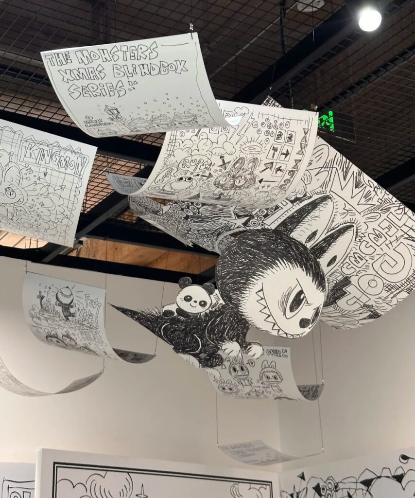 Of course, it would be hard to miss the massive sculpture of Labubu popping upside down from psychedlic skies, as well as the rest of Lung’s artworks displayed across galleries.