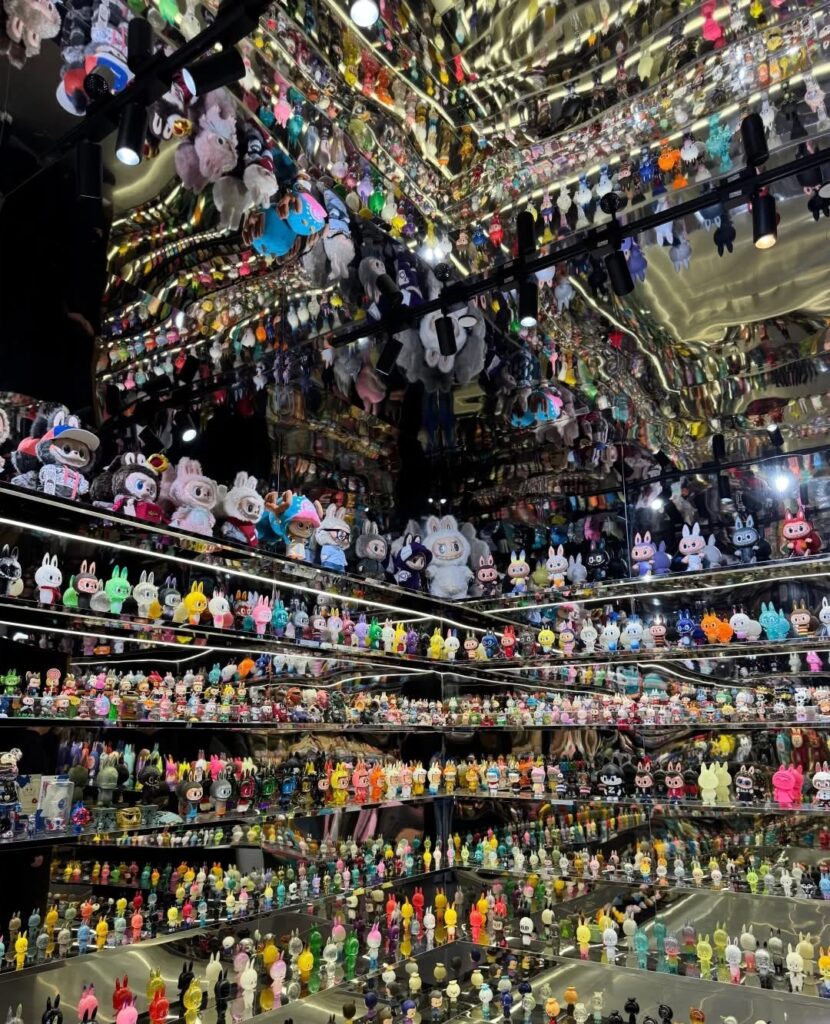 The tour ends at the wonder room, which showcases Lung’s full collection of Labubu vinyls and adjacent creations, including Mokoko, Puca, and Zimomo, all in one place.