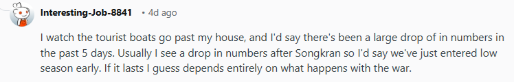 In Thailand, the impact is already visible on the ground, with tourist activity showing early signs of decline: