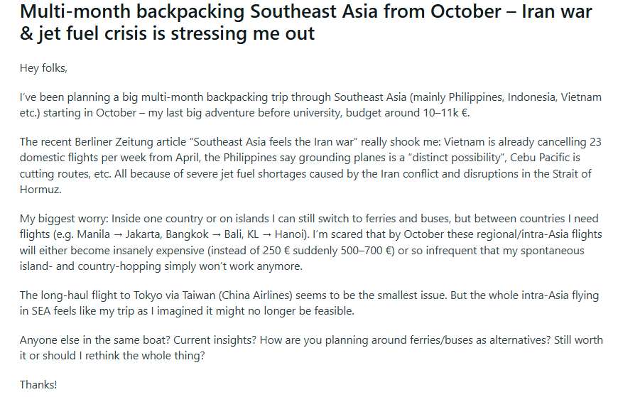 Beyond industry data, the shift is already being felt on a personal level. Across online forums, travelers are beginning to rethink plans, delay decisions, or reconsider destinations altogether.