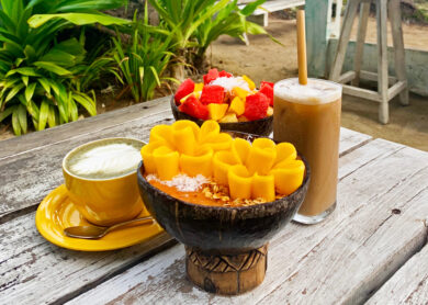 A vegetarian cafe that’s one of the few dining spots in Siargao to serve healthy smoothie bowls using locally sourced organic produce. Smoothie bowls consist of fresh fruits and homemade granola, and house favorites include the Super Bowl, a fruit medley with yogurt, and Cloud 9 Kook, an energy booster made of banana, peanut butter, cacao, and coconut milk. The best part? Diners can enjoy these refreshing and light-tasting but tummy-filling delights al fresco right on the beach of the island’s most popular location—the surfing capital of Cloud 9.
