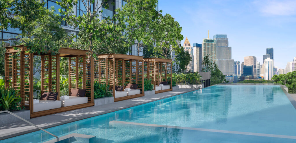 Cabanas by the swimming pool at The Ritz-Carlton, Bangkok